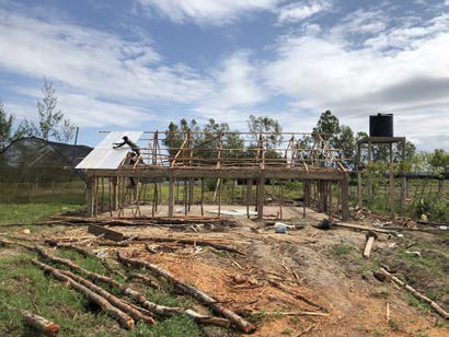 Tijdens de rondgang blijkt dat de watervoorziening nog steeds een lastig ‘item’ is. De dakgoten van het ‘hoofdgebouw’ zien er prima uit. De kraan van de tank lekt als een gieter, maar ‘gelukkig’ staat er wel een opvangbak onder, maar die stroomt over. Mijn advies om de tanks af te sluiten, is helaas niet opgevolgd, maar de tijd zal het leren. Ik heb het in ieder geval Mr. Mark weer verteld. De dakgoten van het ‘oude worklokaal’ zijn echt aan onderhoud toe. Ook de dakgoten van de hostel zijn verre van goed bruikbaar. Sterker noch, onbruikbaar. Een aansluiting op een watertank is toch wel het laatste wat je moet doen. De watertank achter de hostel is af, dus dat belooft weer wat goeds.